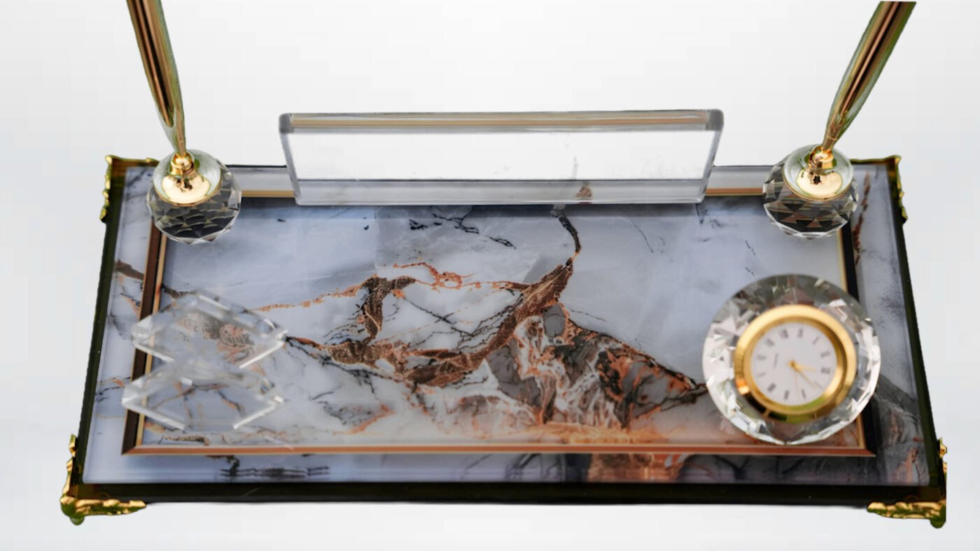Şık tasarımıyla ofis masanıza profesyonel bir hava katar. İsimlik, kalem ve aksesuar bölümleriyle hem dekoratif hem de işlevsel bir kullanım sunar.